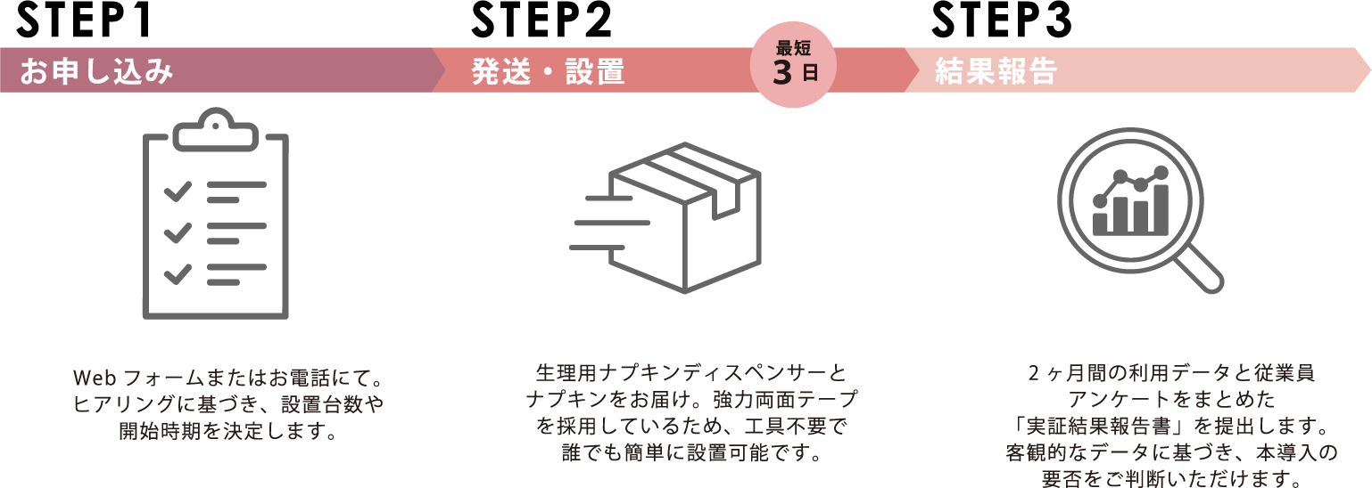 トイレにナプキンがあるだけで安心感が全然違います。急な生理でも慌てずに済み、会議や外出の予定を崩さずに過ごせました。『社員を大切にしてくれている』という気持ちが伝わり、会社への信頼感も高まりました。