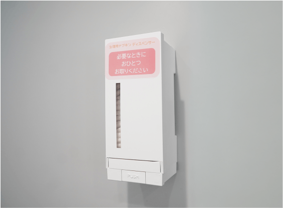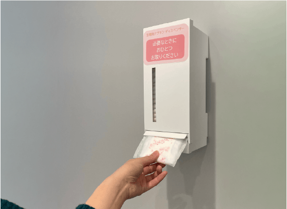 本学では学生への支援として生理用品の無料提供を検討してきましたが、最大の課題は「大学の利用人数に見合う収納量」と「手洗い場に設置した際の清潔感」の確保でした。