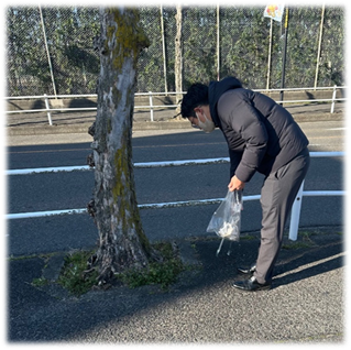 側道には、たばこの吸い殻や空き缶、ペットボトルが落ちていることが多いため、特に注意しています。