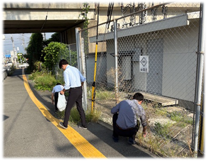 周辺のゴミ拾い、営業所の雑草取りを行いました。