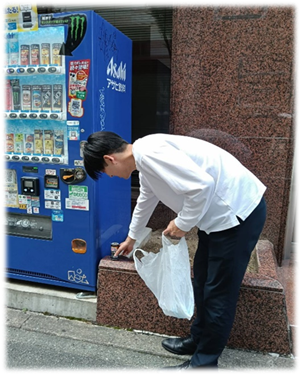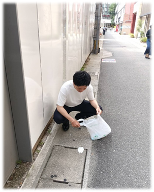 営業所の周辺だけでなく、近隣にあるごみも見落とさずに拾っています。
